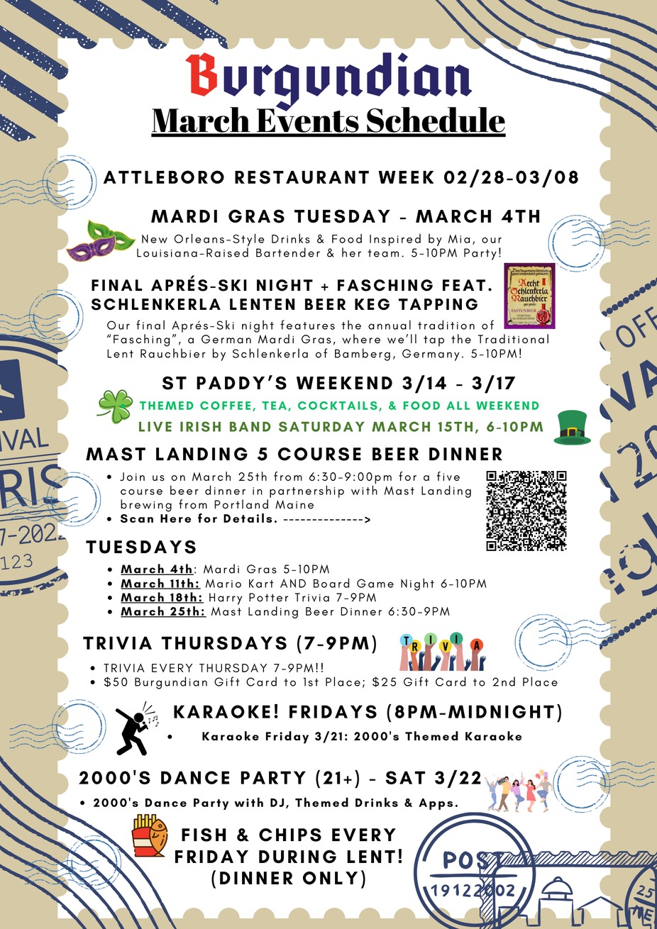 Burgundian holds Trivia EVERY Thursday 7-9PM.